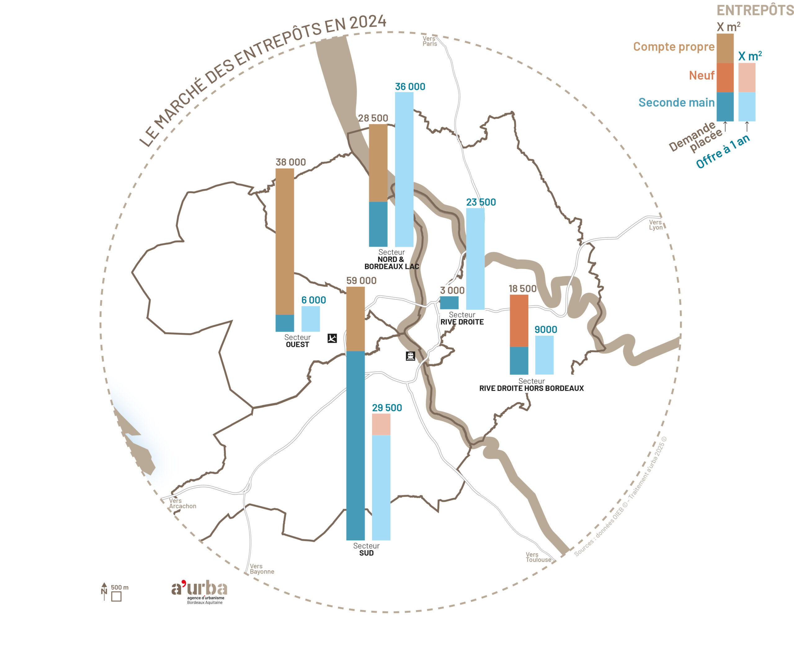 La Rive droite hors Bordeaux Métropole et le secteur Nord / Bordeaux Lac maintiennent leurs dynamiques à la faveur de transactions logistiques de grande taille.
